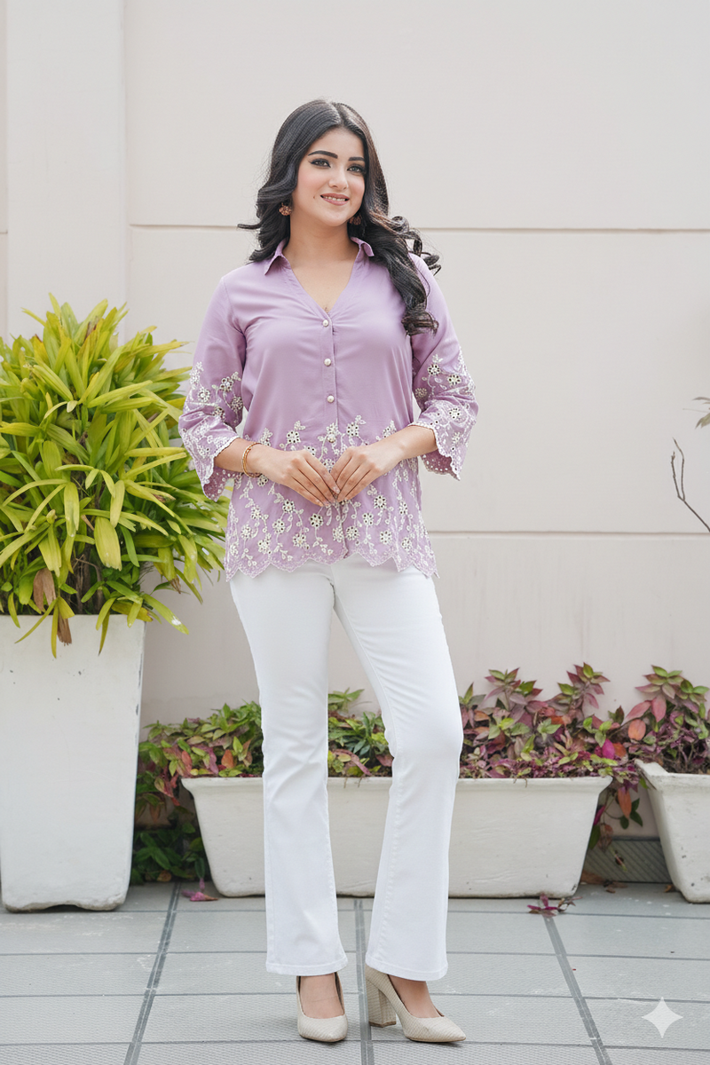 Lavender Cut-Work Top