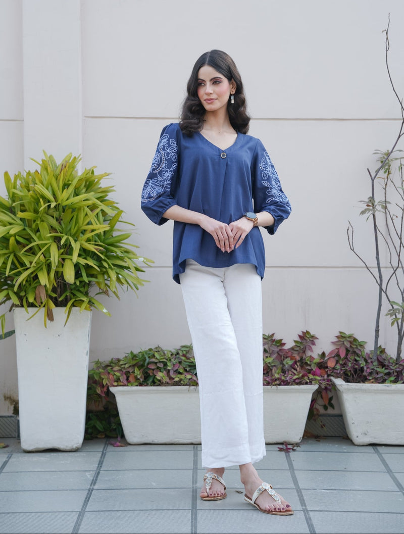 Midnight Blue Cut-Work Top