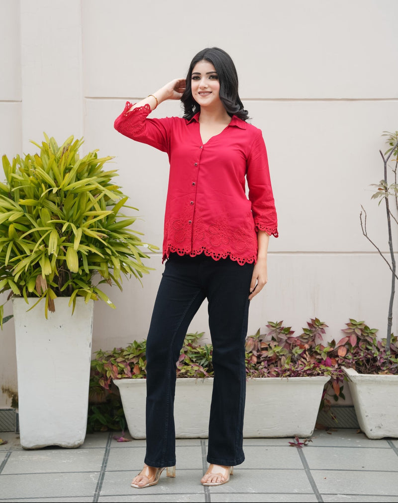 Crimson on Crimson Cut-Work Top