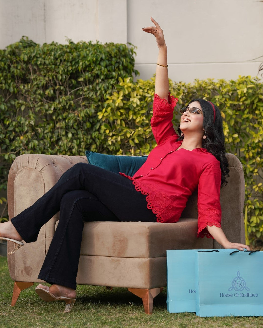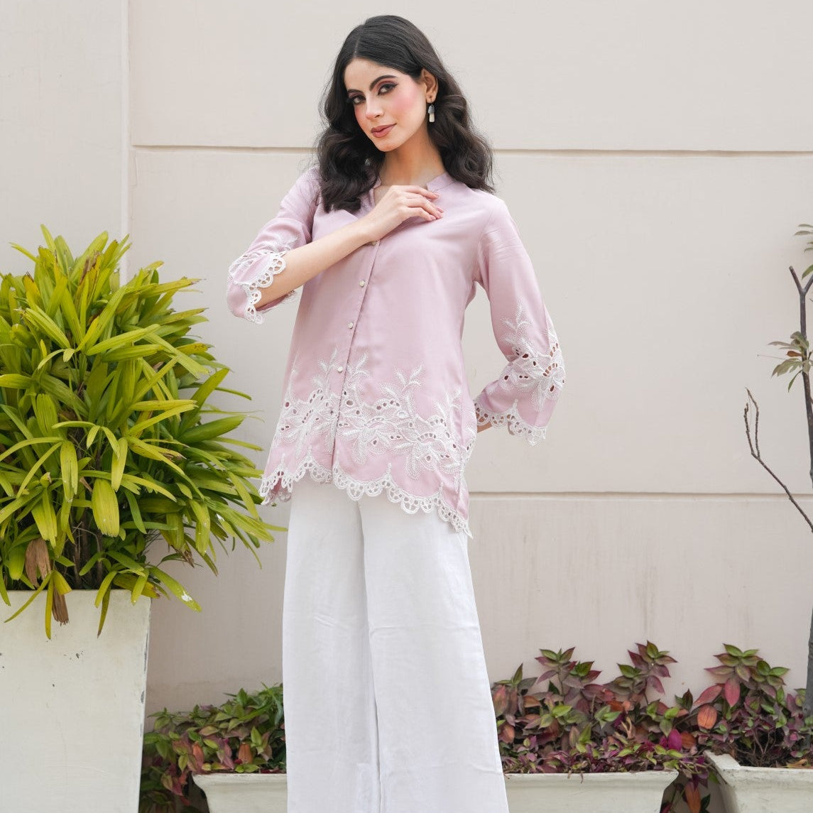 Onion Pink with 2 Color Twist Cut-Work Suit-Set