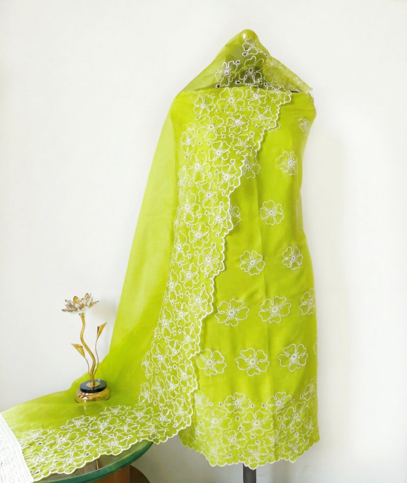 Pastel Yellow with Pastel Green Jaal Cut-Work Suit-Set