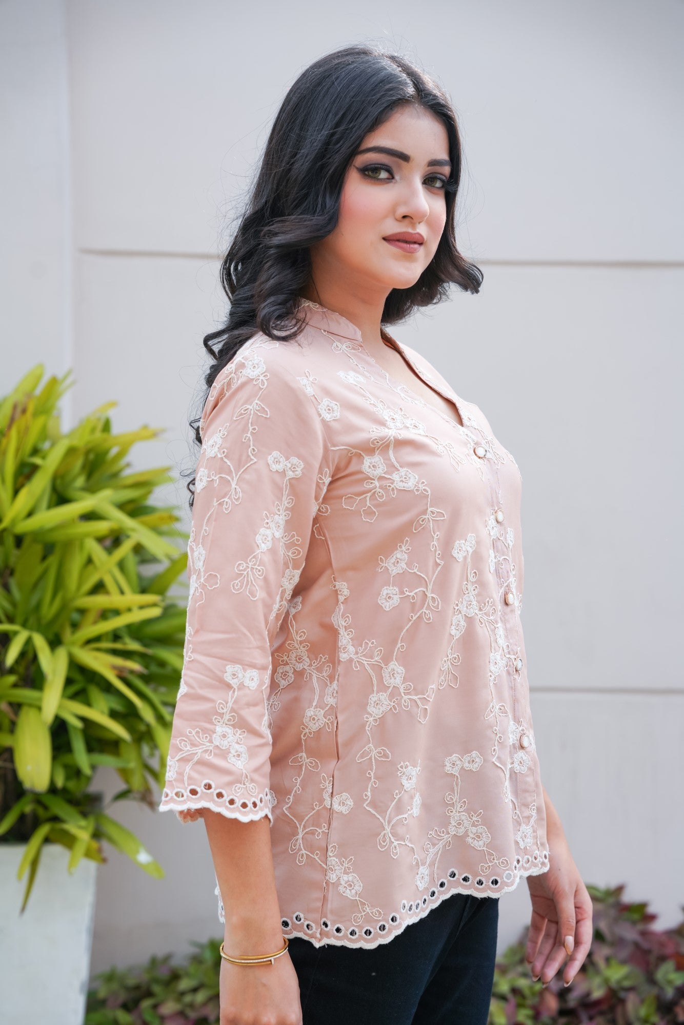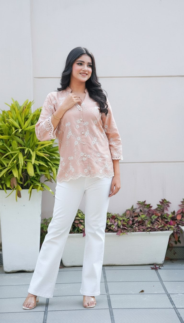 Our upcoming summer collection features breezy tops in delicate pastel shades — think blush pink, powder blue, mint green, and butter yellow — designed to keep you cool and effortlessly elegant. Each piece is adorned with intricate cut-work embroidery, adding a touch of artistry and refined detail that feels both fresh and feminine.