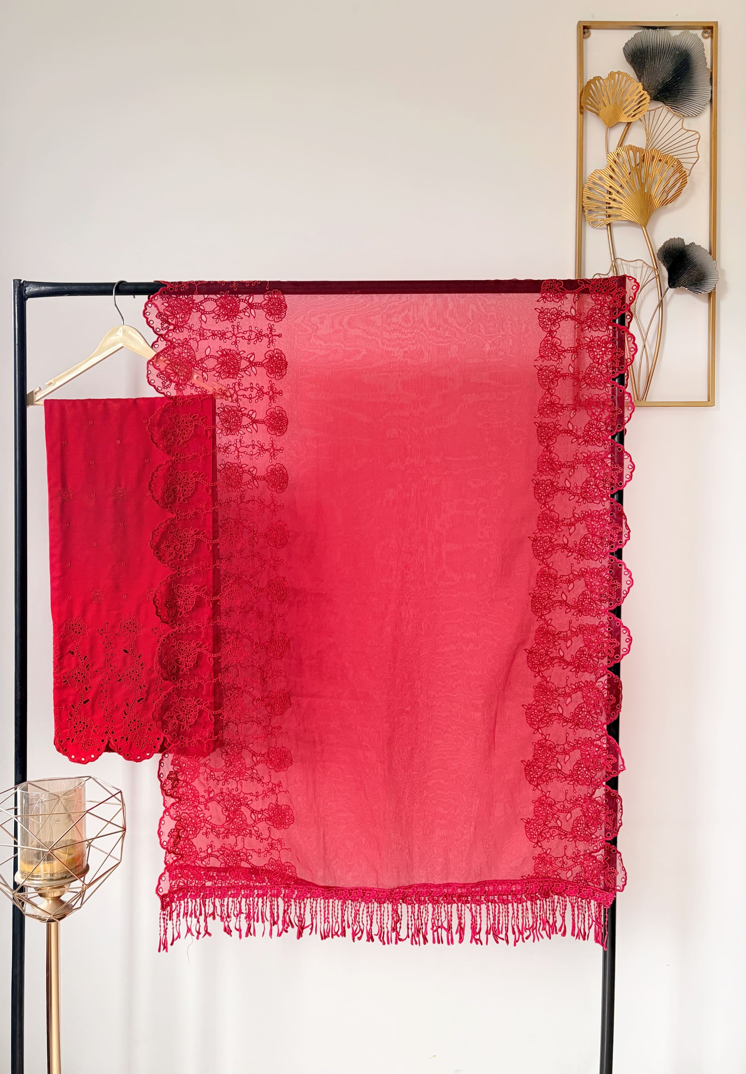 Crimson on Crimson Lily Cut-Work Suit-Set