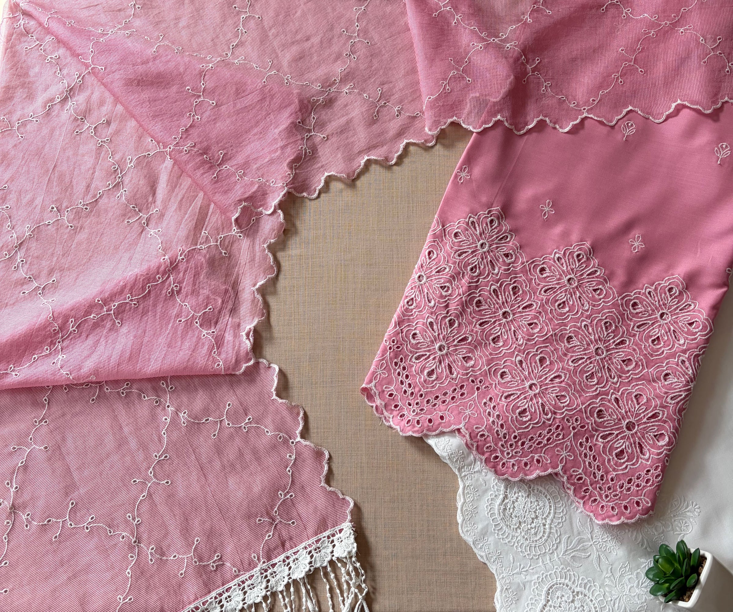 Dusty Pink Cut-Work Suit-Set