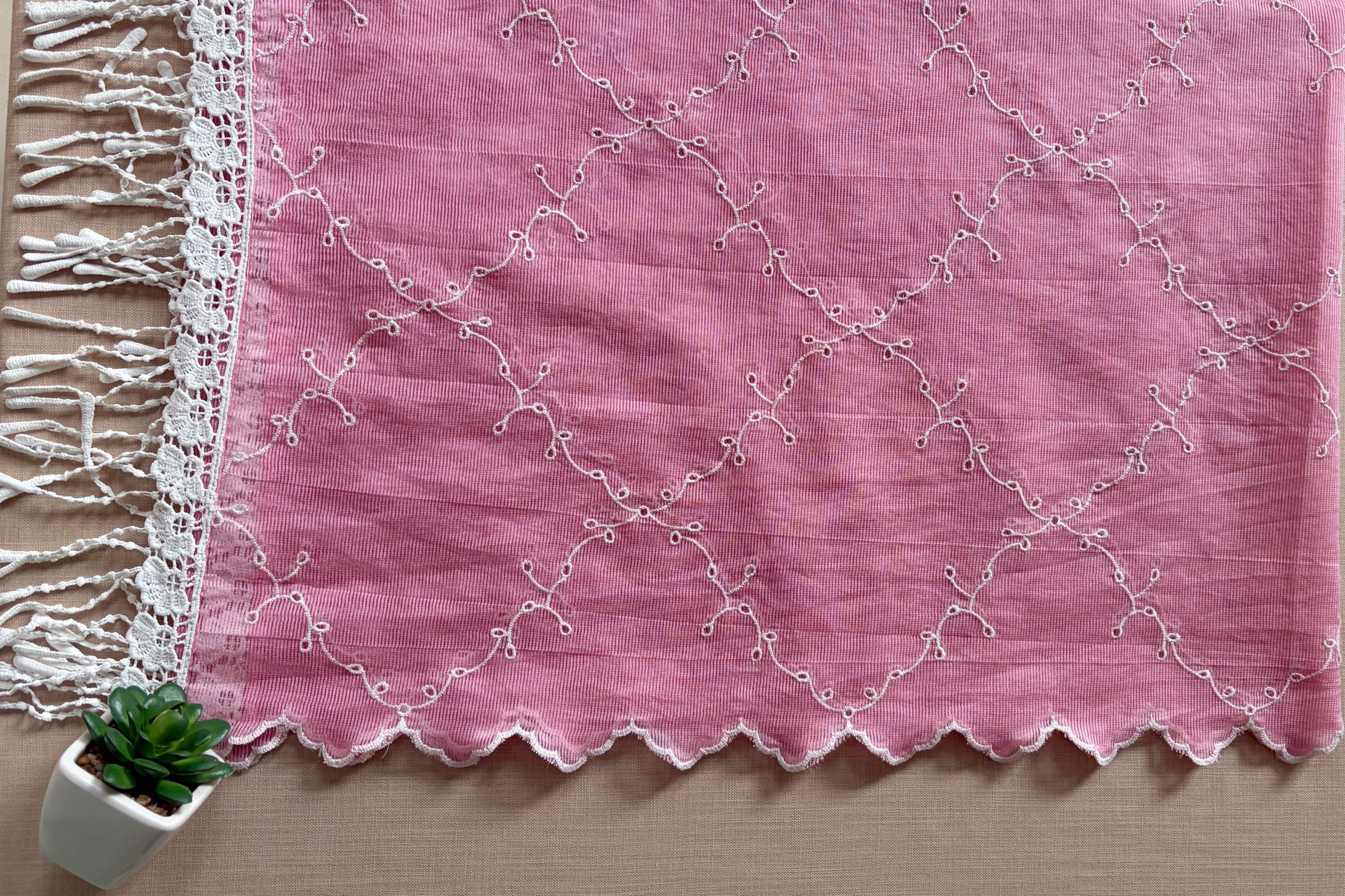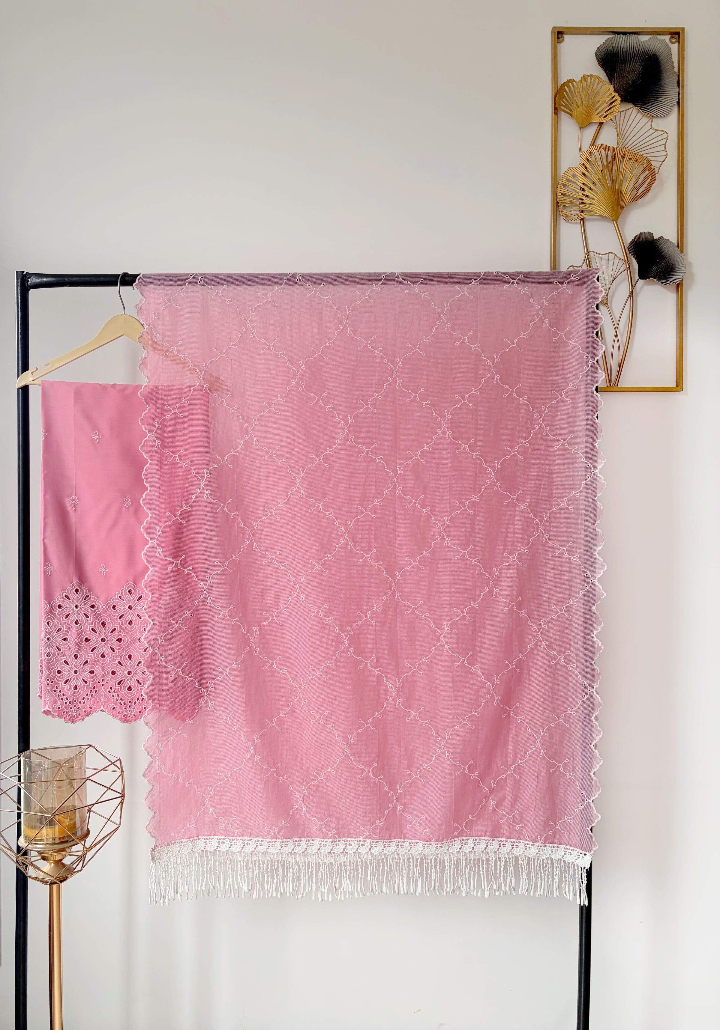 | Color | Dusty pink with white cut-work kadhaee |