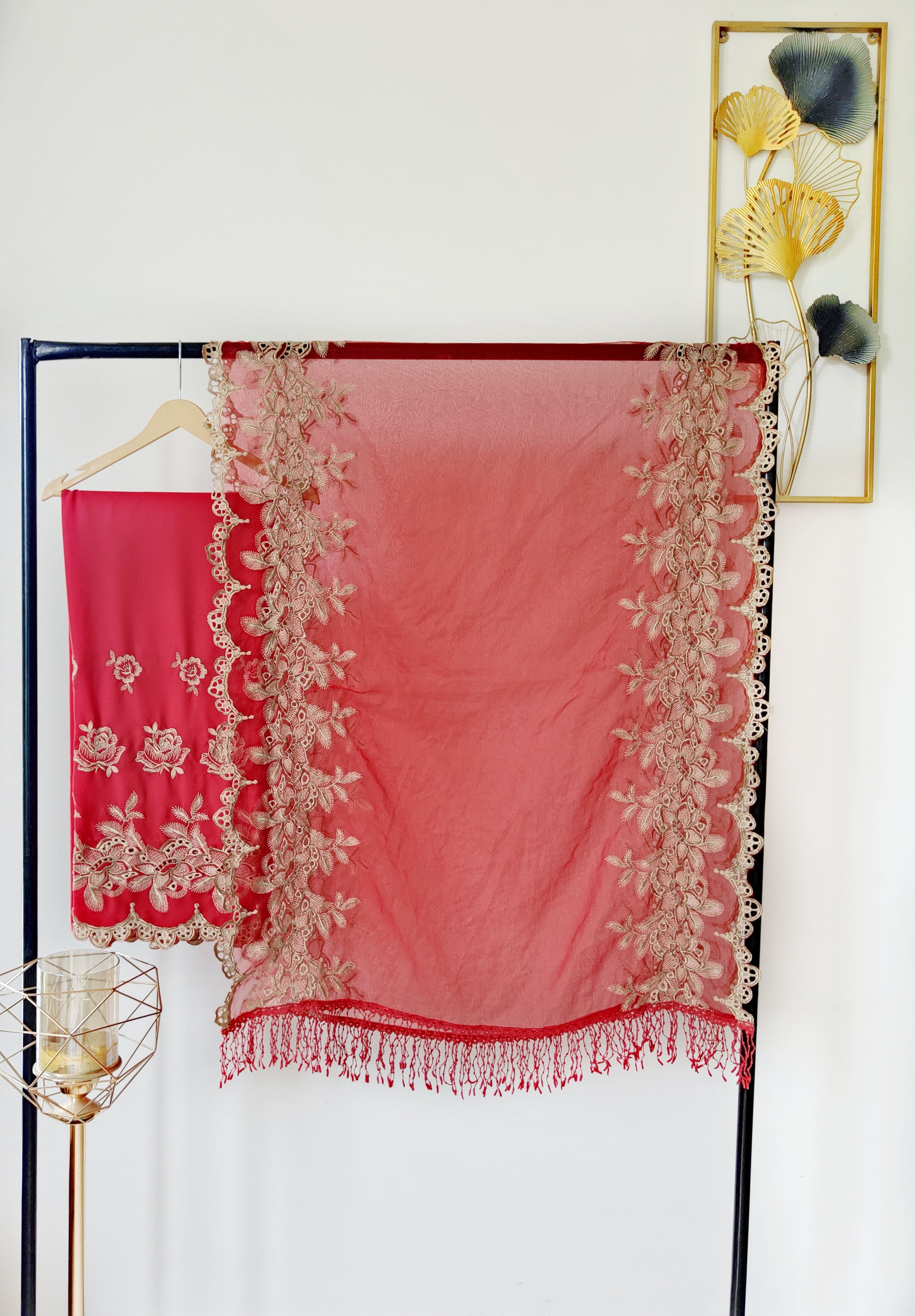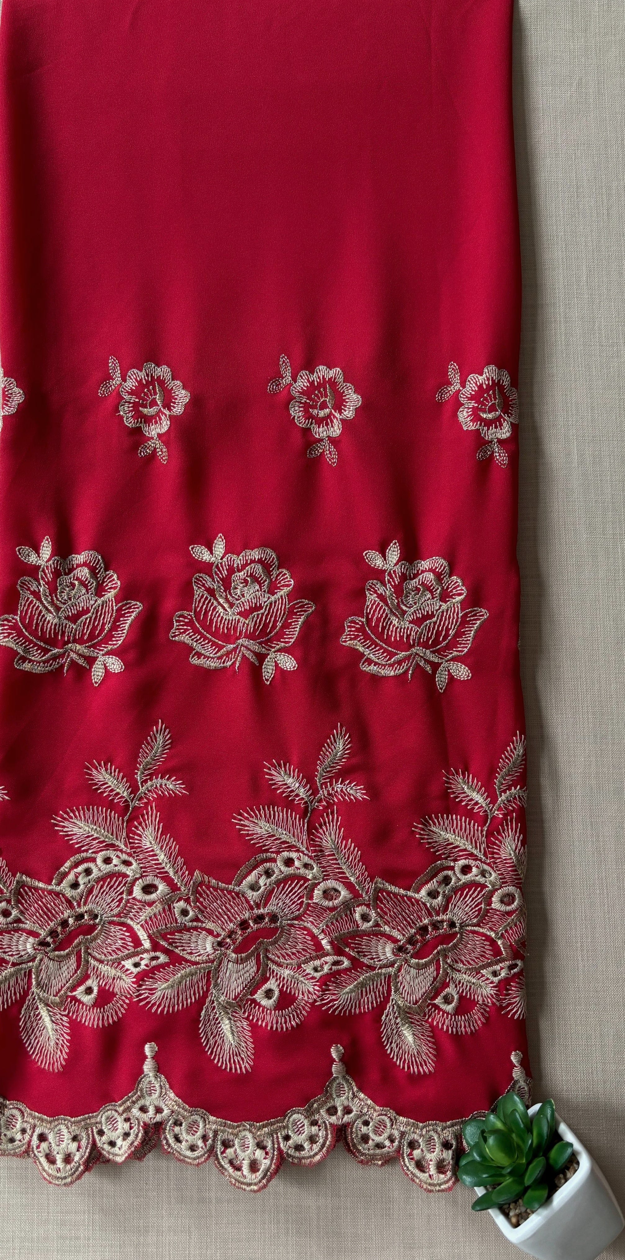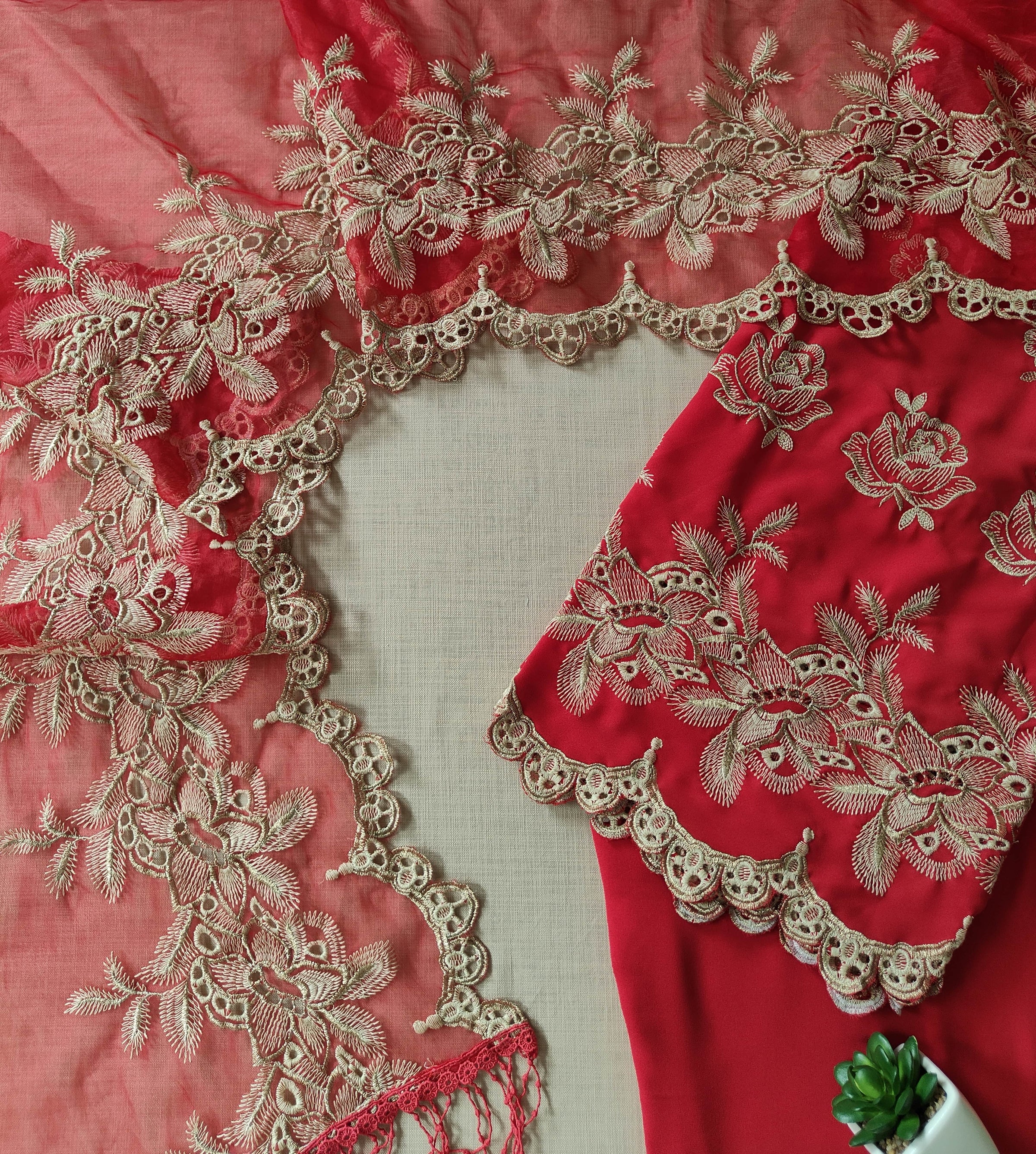 Scarlet Red Zari Cut-Work Georgette Suit-Set