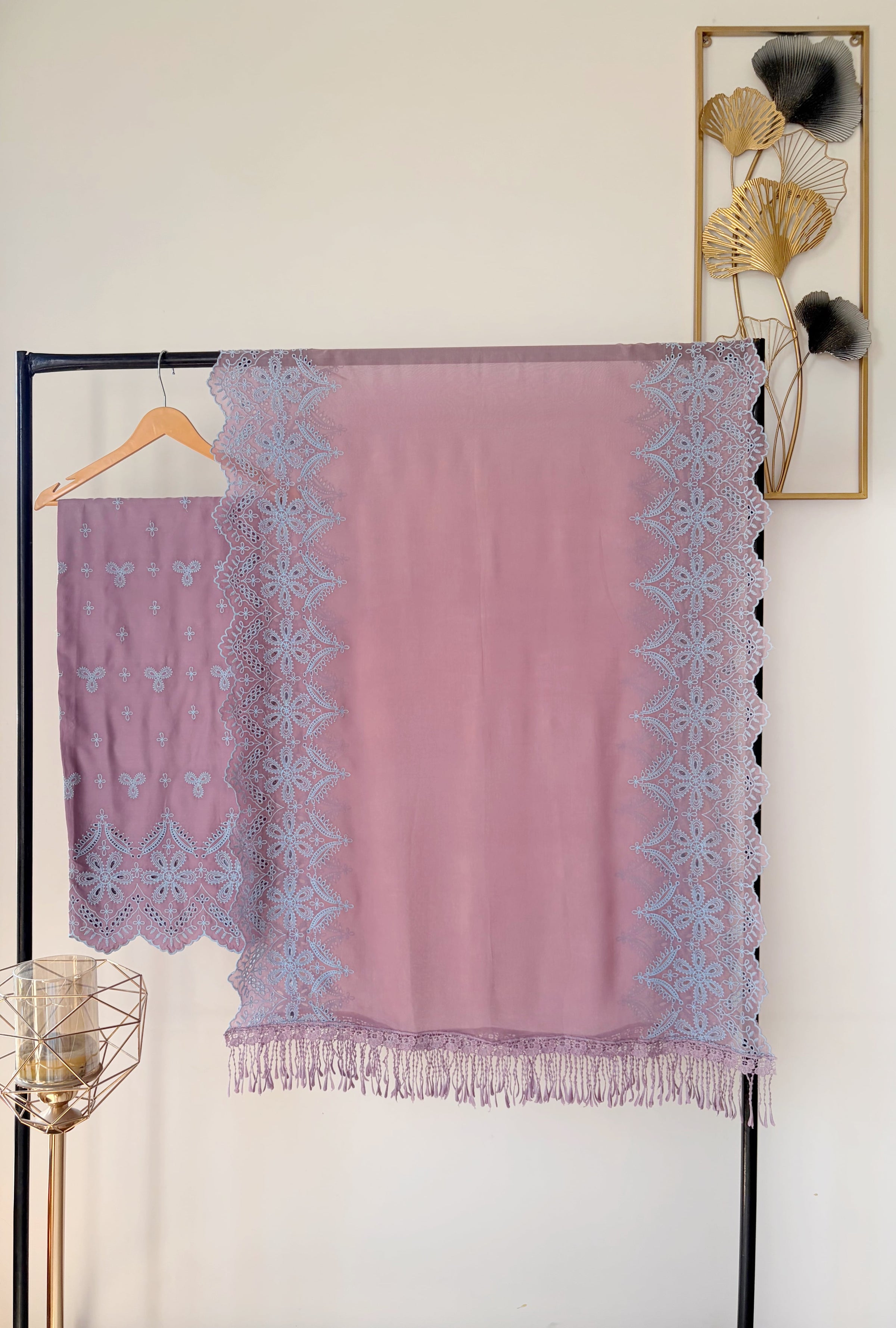 Mauve with Pastel Blue Cut-Work Suit-Set